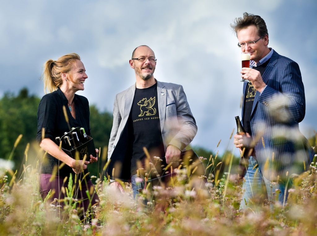 De Gooische Bierbrouwerij kent 3 eigenaren (vlnr): Arjanneke, Gijs en Guido. Gijs en Arjanneke startte in 2010 de Gooische Bierbrouwerij met vrienden vanuit de behoefte om ‘iets uit het Gooi’ mee te kunnen nemen (iets lokaals cadeau te kunnen doen) gecombineerd met hun passie voor bier. In 2014 trad Guido toe en versterkte daarmee de zakelijke kennis van de brouwerij en de focus op sociaal ondernemen. Daarnaast ondersteunt Priscilla ons bij de logistiek en in het proeflokaal en is Bas onze brouwassistent in opleiding